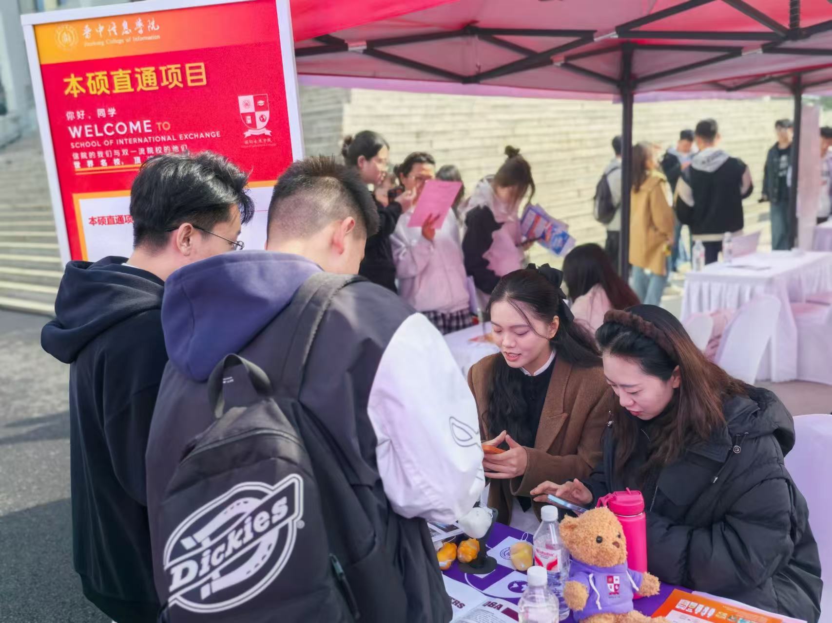 10月15日,在晋中信息学院 2025 年秋季大型双选会的现场,为全面落实学校高质量人才培养战略,满足学子多元化发展需求,国际交流学院设立专属咨询展位,将优质海外教育资源与学生深造需求精准对接,为毕业生打造国际化升学 "绿色通道"。