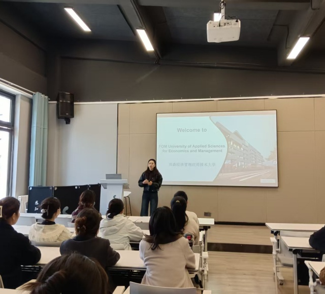 10月31日14:00国际交流学院张彩虹老师在上河书院Q+·赋能空间开展了德国埃森经济管理应用技术大学留学项目宣讲会,这次宣讲会意在满足学生多样化与个性化的出国学习需求,做好学校学生出国留学服务工作,帮助有意向出国留学的同学们更好地了解FOM硕士项目相关事宜,进一步营造学校国际化氛围。